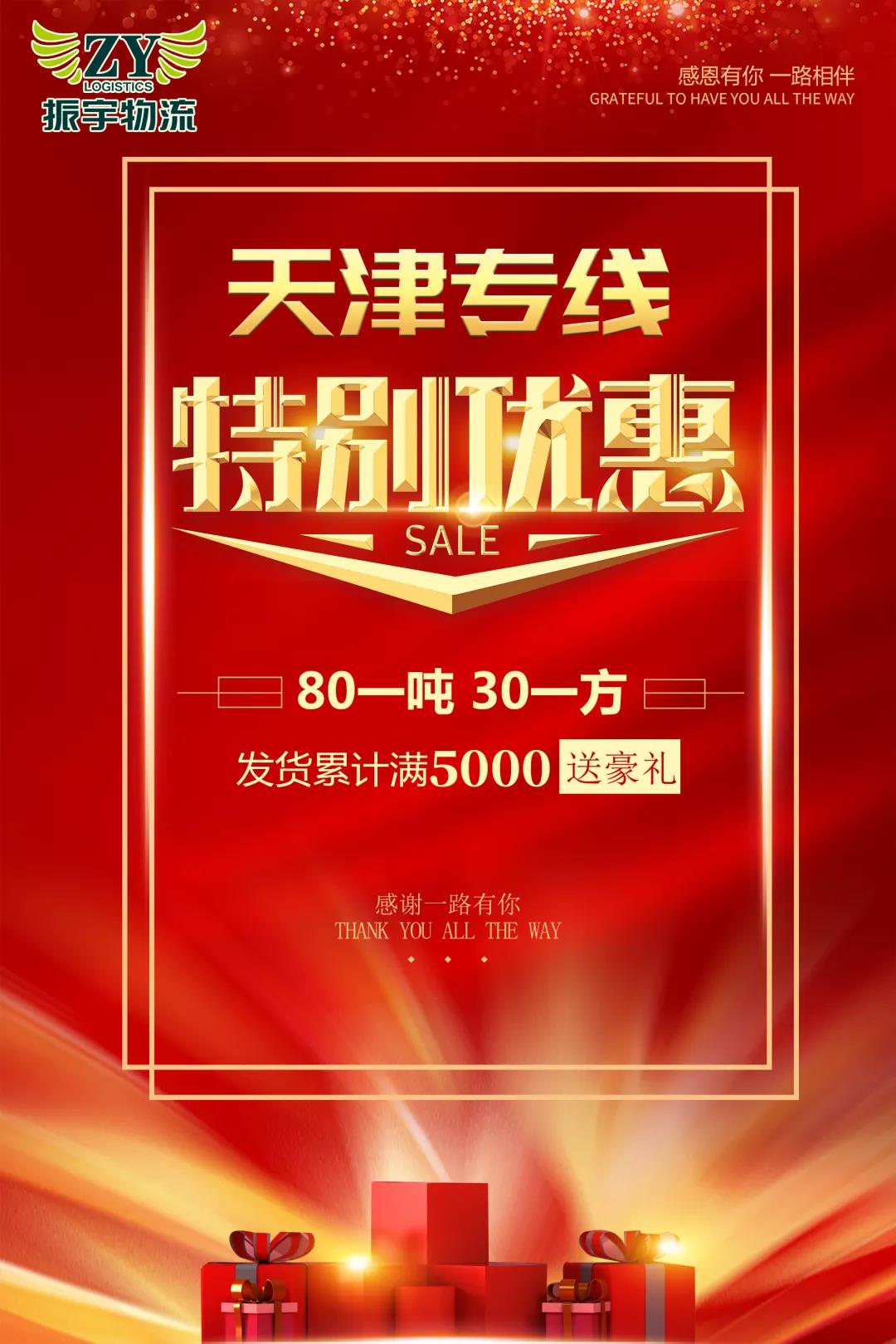 振宇物流天津專線大優惠,驚喜豪禮送送送!
