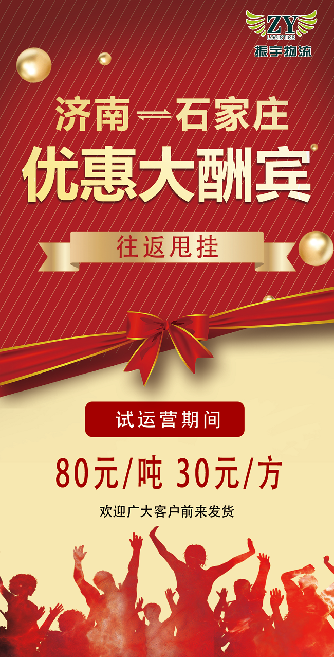 熱烈祝賀振宇物流9.13號開通濟南到石家莊專線!往返甩掛,優惠多多!