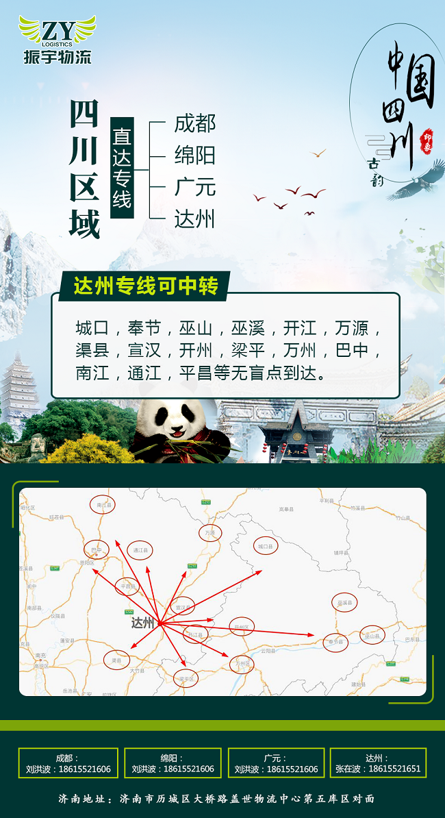 濟(jì)南-成都、綿陽、廣元直達(dá)專線