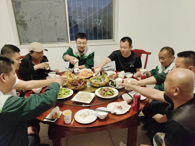 品嘗完蛋糕后,全體家人共享溫馨豐盛的晚餐。餐桌上菜品豐盛、香氣四溢,大家圍坐暢談,分享工作中的感悟、生活中的趣事,平日里并肩奮斗的默契,在此刻化作家人般的親密無間,輕松愉悅的氛圍彌漫全場。