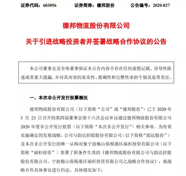 濟南物流公司:韻達戰略投資德邦,占股約6.5%,快遞投資并購好戲開始?