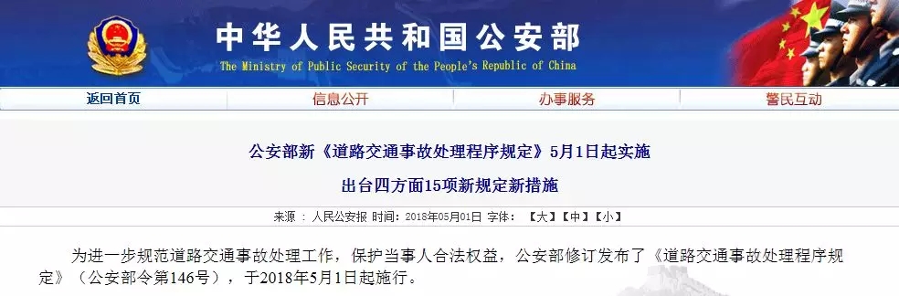 為進一步規范道路交通事故處理工作,保護當事人合法權益,日前,公安部修訂發布了《道路交通事故處理程序規定》(公安部令第146號),該規定已于2018年5月1日起正式施行。